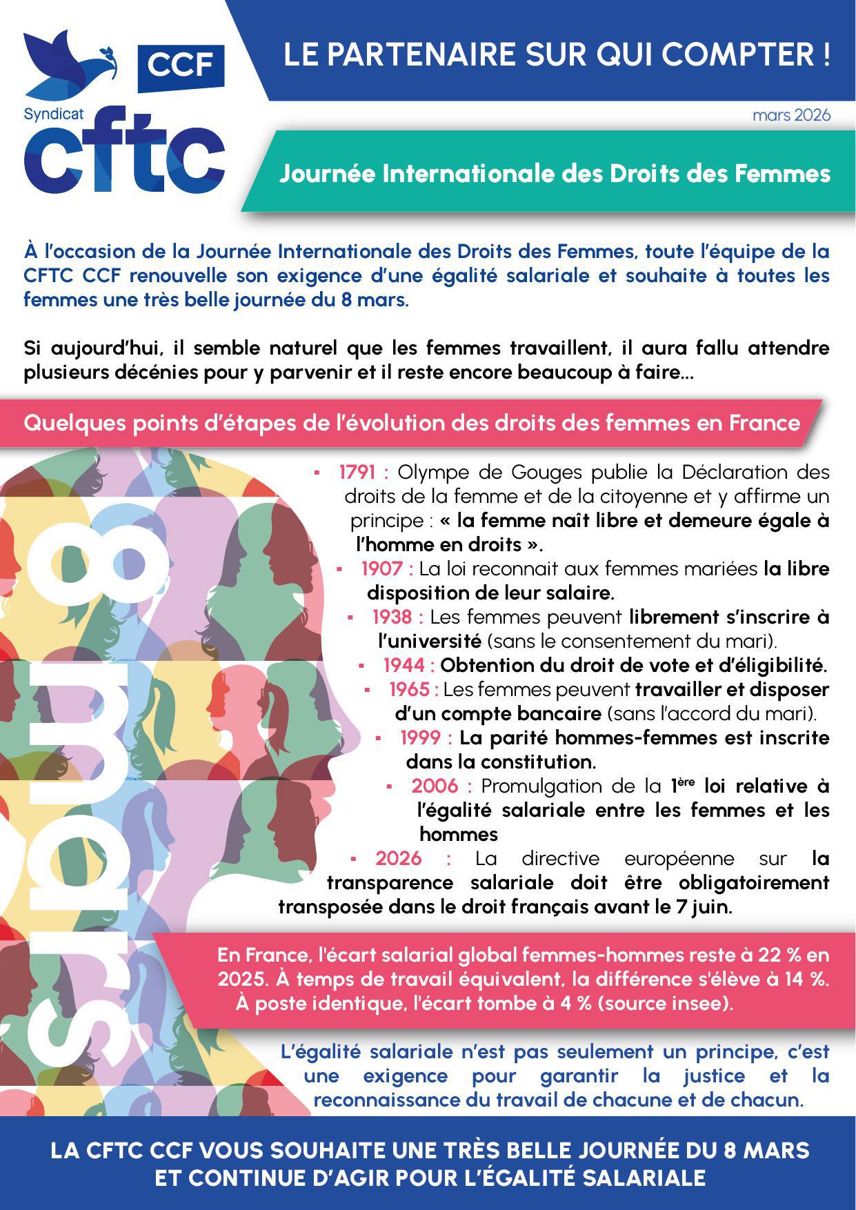La CFTC CCF vous souhaite une très belle journée du 8 mars et vous invite à nous rejoindre pour continuer l'action !